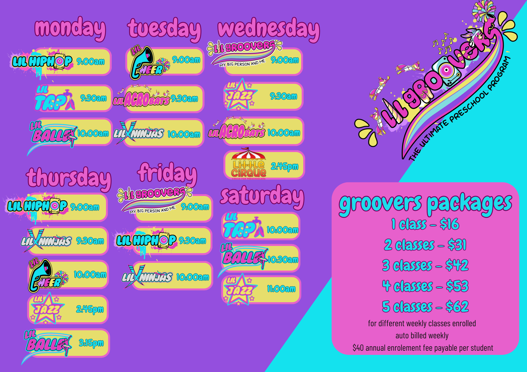 Check out our timetable below and enrol your lil groover today!